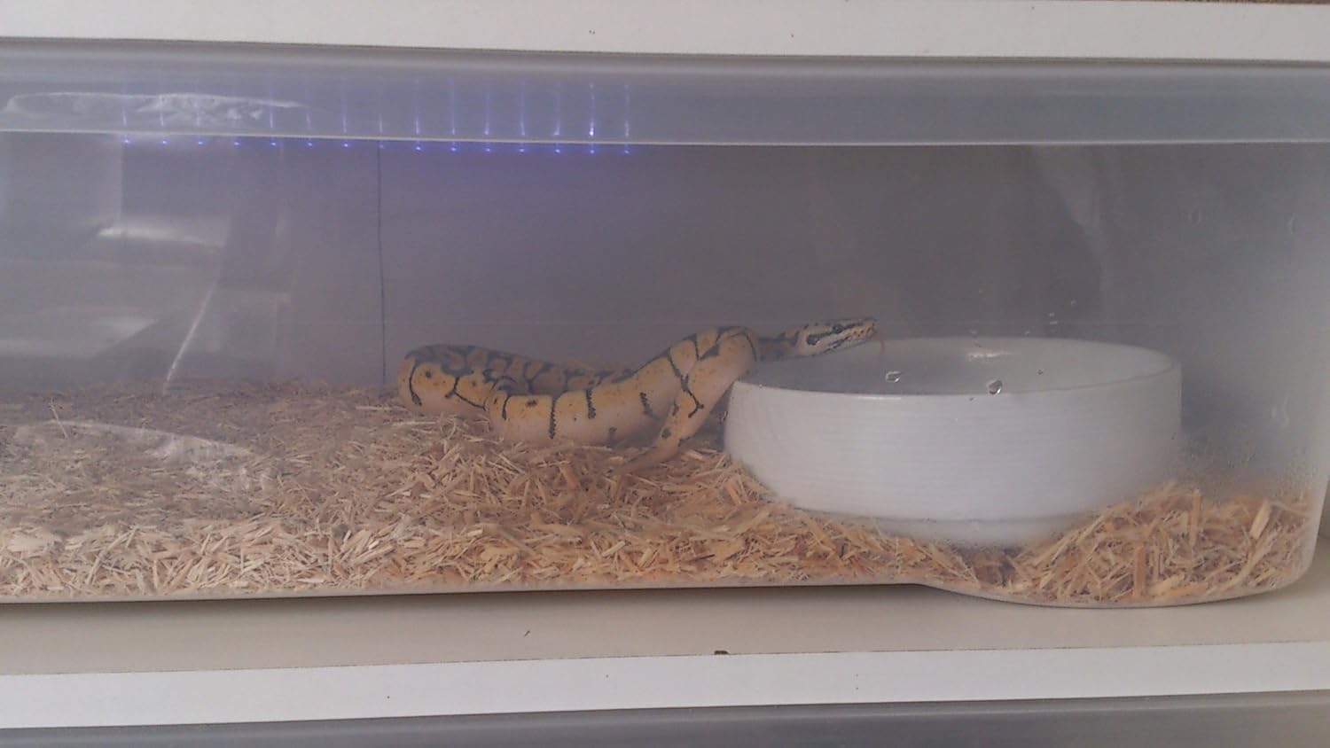 Königspython (1): Mir reicht eigentlich ein 100x50x50 (lxbxh) Terrarium, auch wenn mir ein 120x60x60 Terrarium sehr gut gefällt!